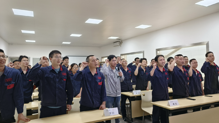 ? ? ? ?培训的最后,余超经理带着参训职工,一起开展安全生产集体宣誓。一声声铿锵有力的宣誓词,响彻整个生产车间。这是对安全的重视,对生命保护的宣誓!安全生产,是对自己负责,对自己的家庭负责,是对企业发展和平安社会负责。